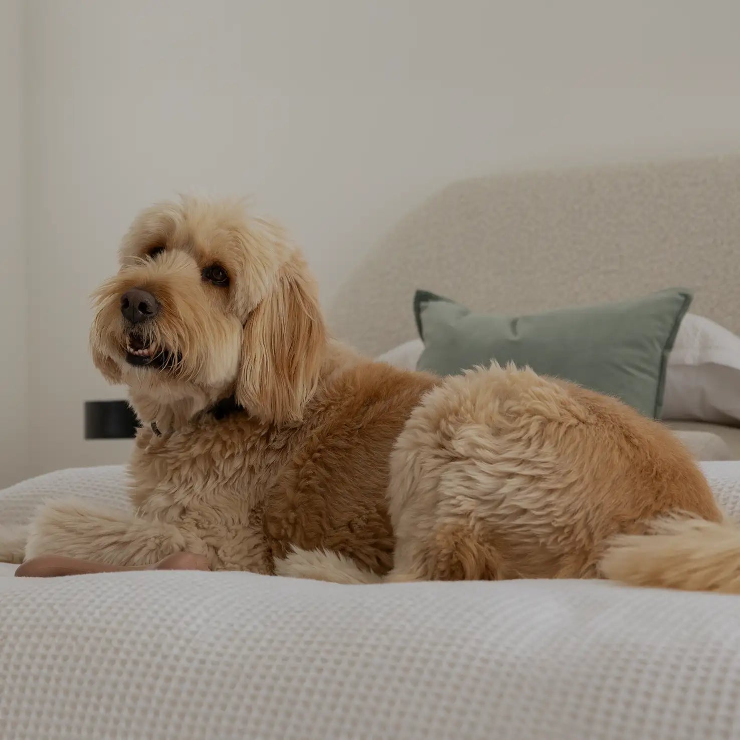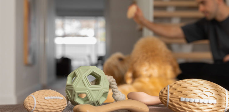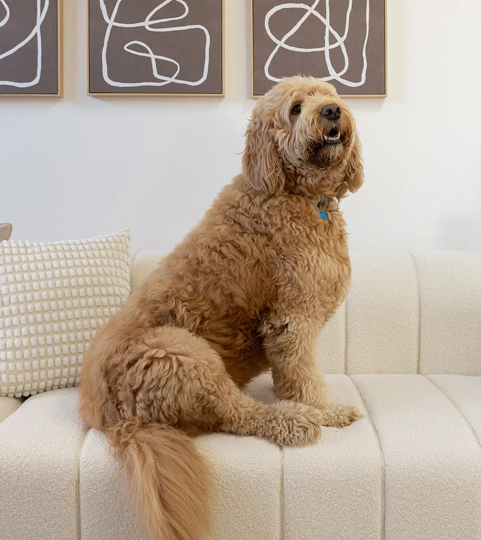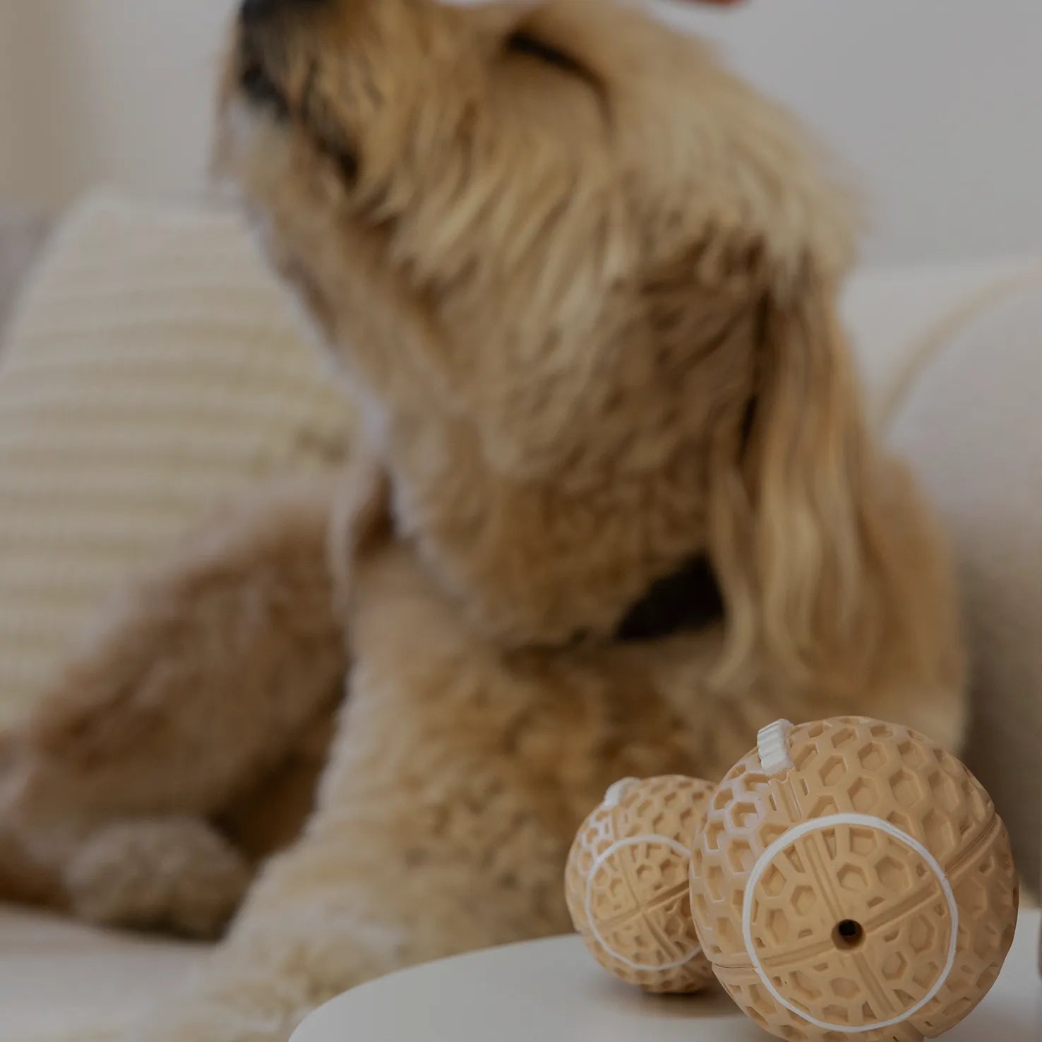 We’re Cassie and Paddy, partners in life and business who are completely obsessed with our Oodles Tex and Hughie. Inspired by their energy, intelligence and love for play, we set out to create toys that could keep up with them while still looking beautiful in the home.